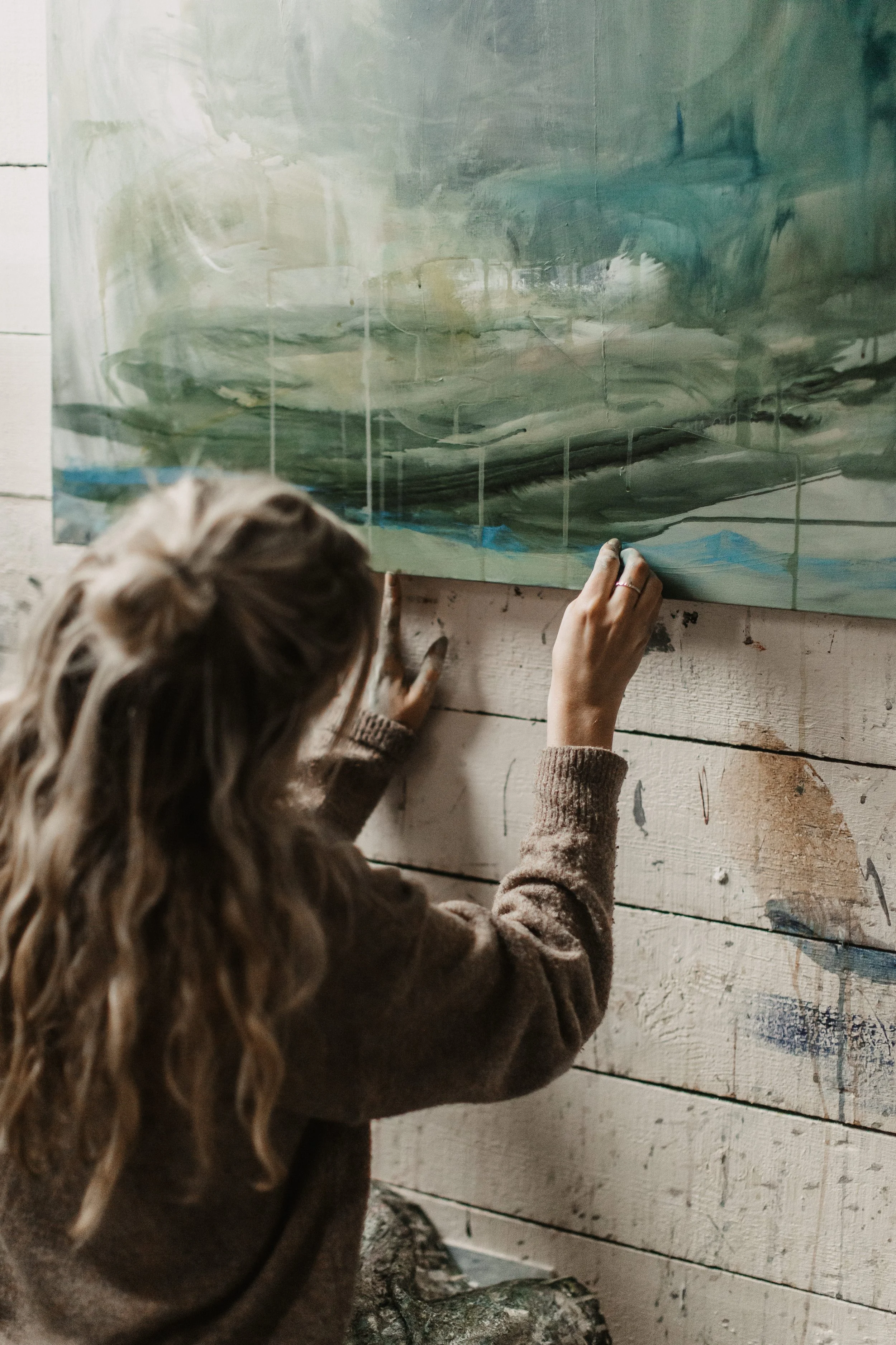 Each painting begins with a meditative search for palette. Colour mixing becomes reflection, refinement and recollection. Once the harmony is found, the act of painting shifts into impulse. Her approach is instinctive and physical, paint committed to surface with urgency and abandon. Working in close proximity to the canvas, rhythm takes over in sweeping, striking gestures where tension and control exist in balance.