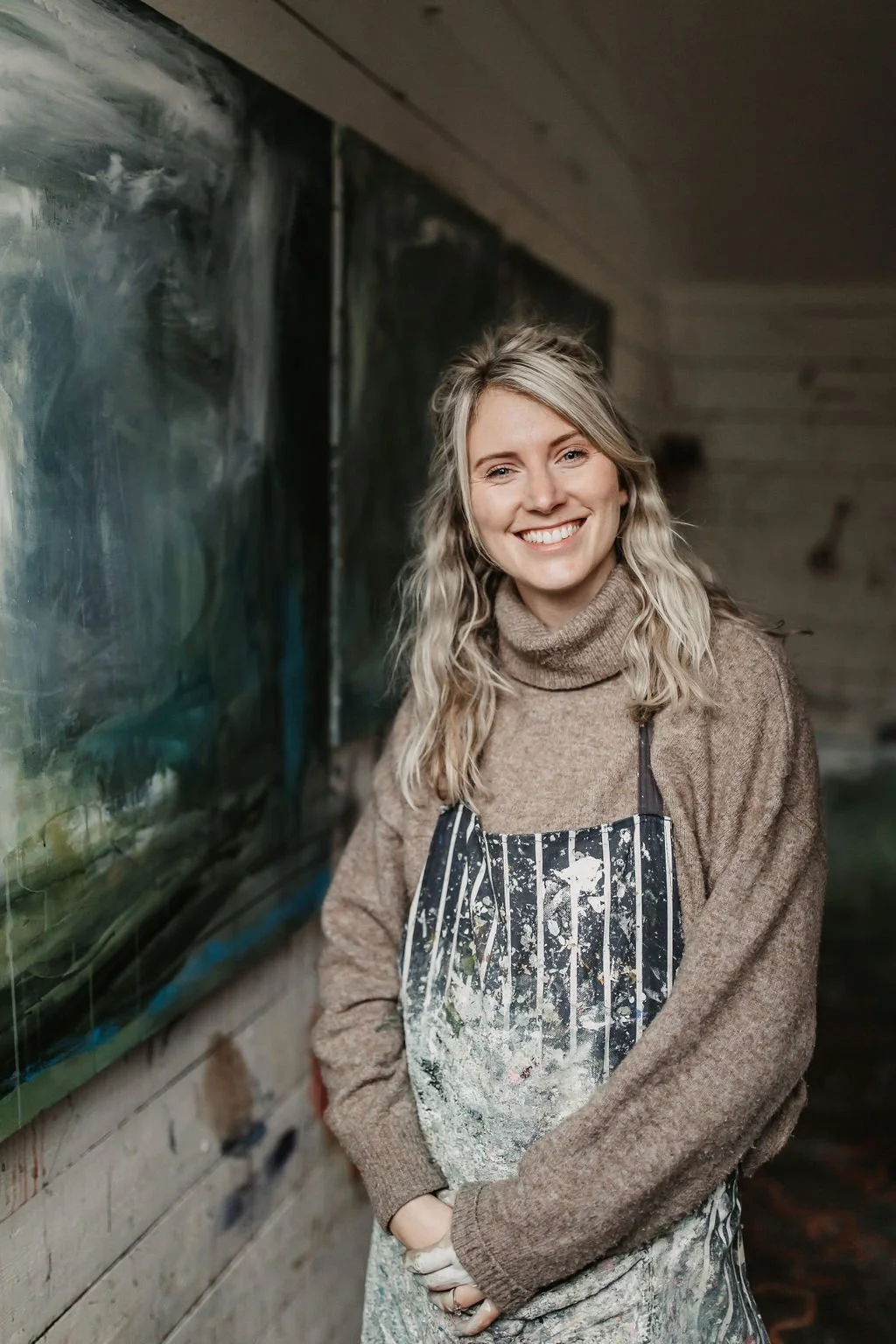 Holmes speaks of a desire to reach a “perfect imbalance” in every work. Some resolve in hours, others over years, but each painting is a layered record of time, movement and emotional resonance.