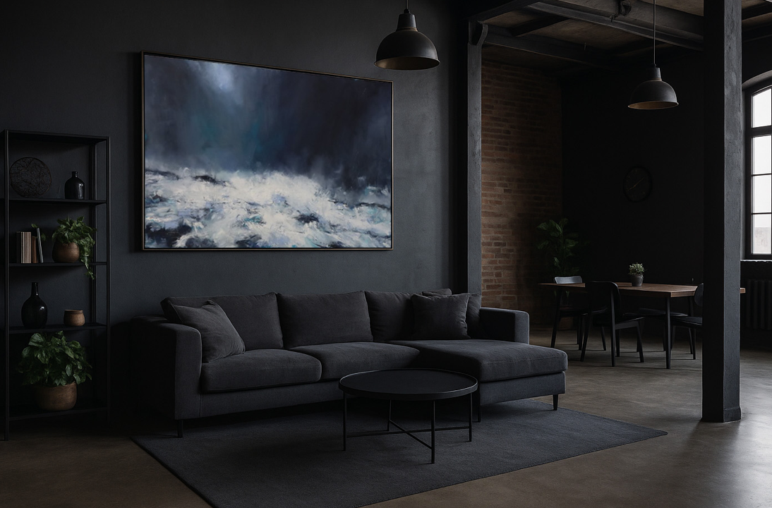 We specialise in large-scale contemporary works designed to anchor living spaces, entrance halls and commercial environments. From expansive canvases to site-responsive commissions, we support projects requiring presence and refinement.